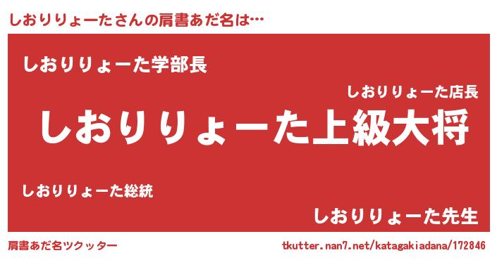 | ヘコむあだ名 | 『しおりりょーた(遠い目)』『しおっふぃ~』 |