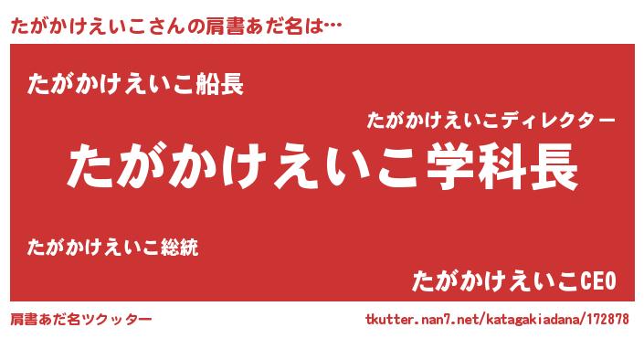 | ヘコむあだ名 | 『たがもー』『たがかけえいこ(笑)』 |
