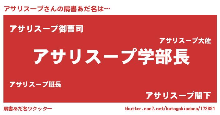 | ポケモン風あだ名 | 『アックウザ』『アサチュウ』 |