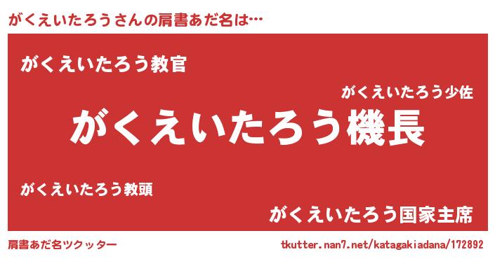 | 意味不明あだ名 | 『住所不定無職がくえいたろう(95歳)』 |