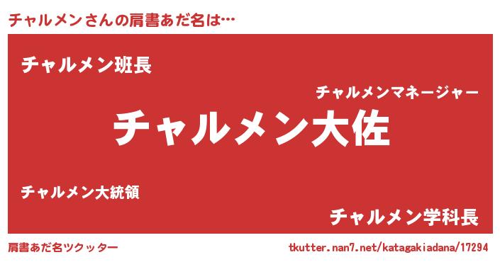 | ヒーロー風カッコイイあだ名 | 『炎刃騎士チャ』『天空の使者チャルメン』 |
