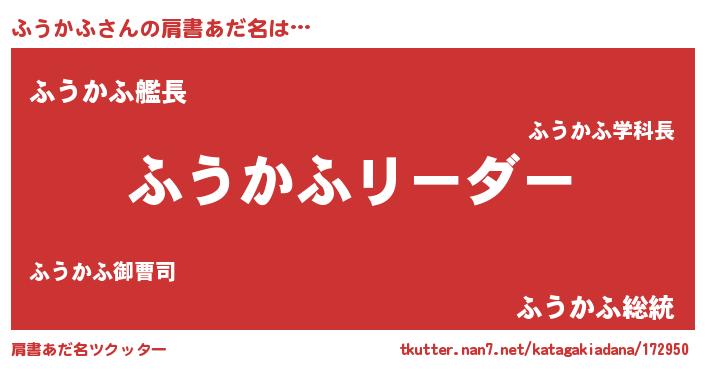 | 欧米人風あだ名 | 『ウサインふうかふ』『ダニエルふうかふ』 |