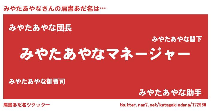 | 意味不明あだ名 | 『とにかく怪しいみやたあやな』 |