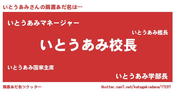 | 男性向けラノベタイトル風あだ名 | 『いとうあみという概念が存在しない退屈な世界 』 |