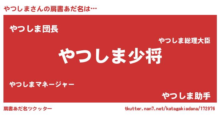 | 胡散臭い通販商品みたいなあだ名 | 『信頼と実績のネックレス…その名も「やつしま」』 |