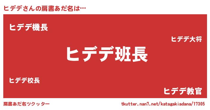 | ヒーロー風カッコイイあだ名 | 『炎刃騎士ヒデ』『仮面ヒデダー』 |