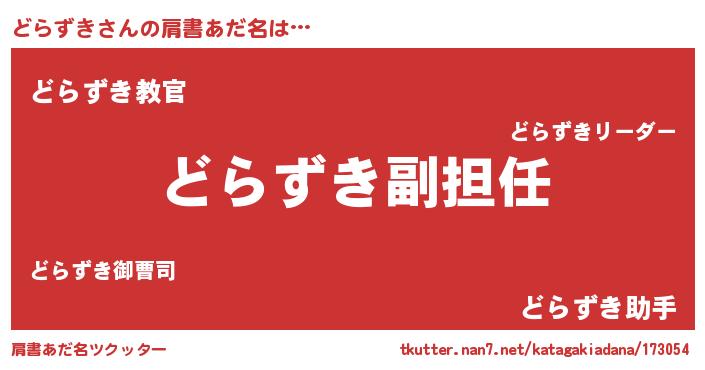 | 胡散臭い通販商品みたいなあだ名 | 『絶対に幸福をもたらす水素水…その名も「どらずき」』 |