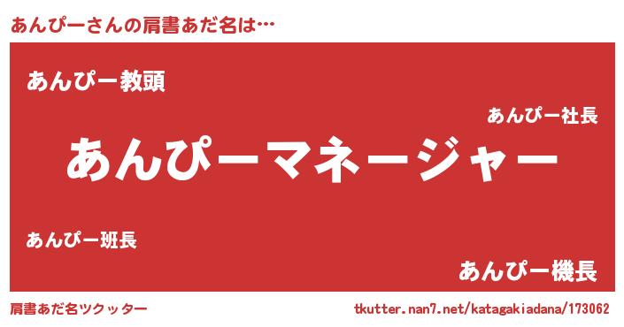 | 欧米人風あだ名 | 『アンジェラ・あんぴー』 |