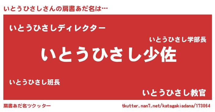 | 男性向けラノベタイトル風あだ名 | 『転生したらいとうひさしだった件』 |