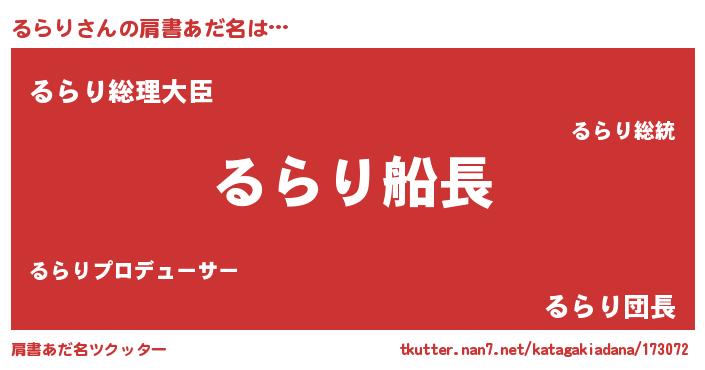 | 意味不明あだ名 | 『るらりフォーエバー』『自称るらり』 |