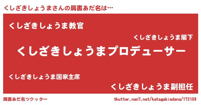 | 欧米人風あだ名 | 『アンジェラ・くしざきしょうま』 |