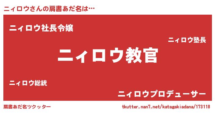 | ヒーロー風カッコイイあだ名 | 『仮面ニィダー』『スーパーニィロウ』 |