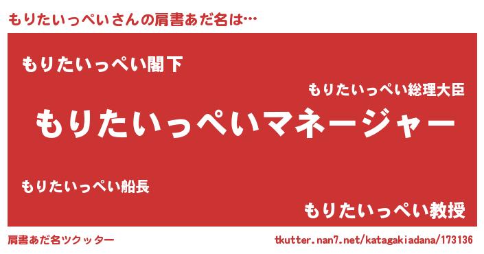 | 欧米人風あだ名 | 『アンジェラ・もりたいっぺい』 |