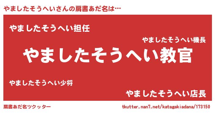 | 男性向けラノベタイトル風あだ名 | 『この素晴らしい世界にやましたそうへいを!』 |