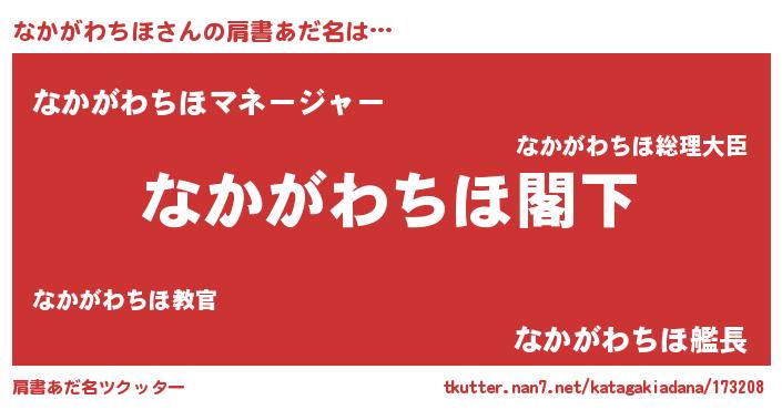 | 意味不明あだ名 | 『自称なかがわちほ』 |