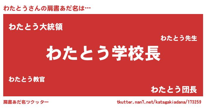 | ヒーロー風カッコイイあだ名 | 『天空の使者わたとう』『銀牙騎士ワタ』 |
