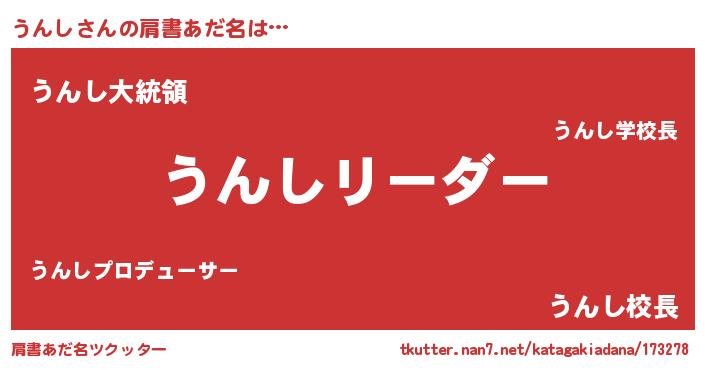 | 女子向けラノベタイトル風あだ名 | 『うんし様がみてる』『うんし伯爵の花嫁』 |