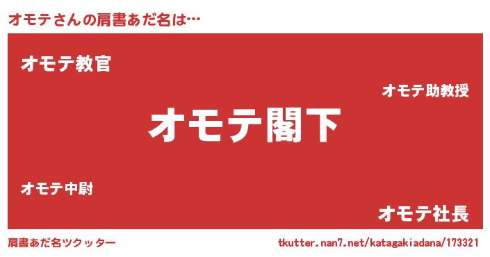 | 女子向けラノベタイトル風あだ名 | 『オモテなんてお断りですっ。』 |