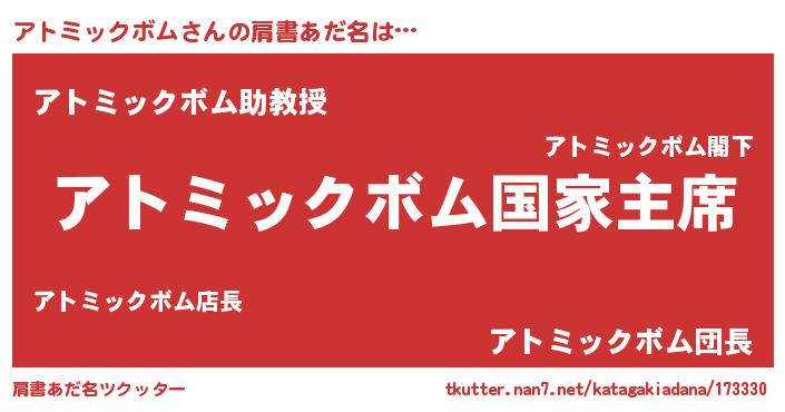 | 意味不明あだ名 | 『アトミックボムフォーエバー』 |