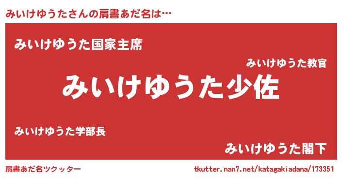 | 男性向けラノベタイトル風あだ名 | 『転生したらみいけゆうただった件』 |