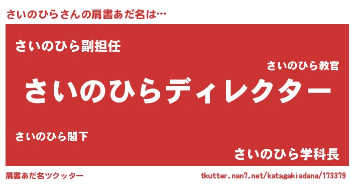 | ヒーロー風カッコイイあだ名 | 『ネオサイノヒラ』『愛の使者さいのひら』 |