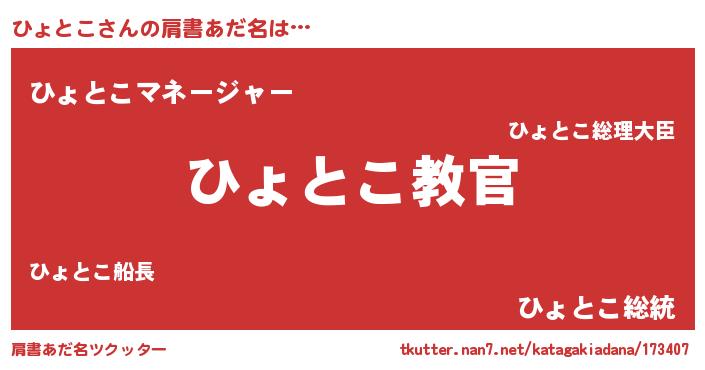 | ヒーロー風カッコイイあだ名 | 『仮面ヒョダー』『最強戦士ヒョトコ』 |