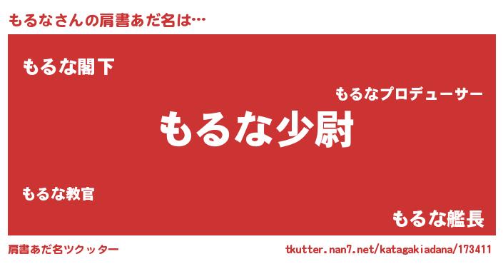| 男性向けラノベタイトル風あだ名 | 『転生したらもるなだった件』 |