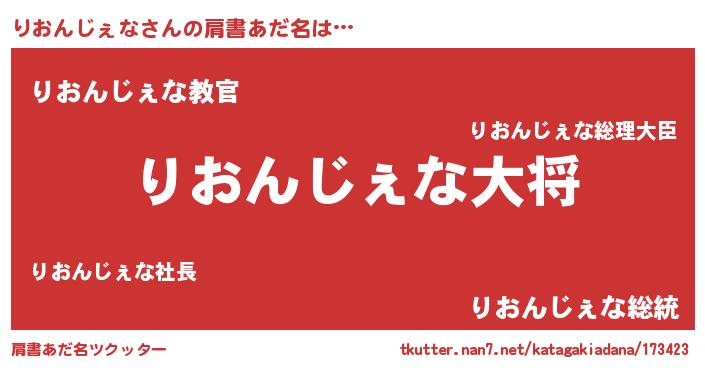 | 女子向けラノベタイトル風あだ名 | 『りおんじぇなの玉の輿計画!』 |