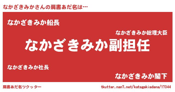 | 胡散臭い通販商品みたいなあだ名 | 『絶対に幸福をもたらす水素水…その名も「なかざきみか」』 |