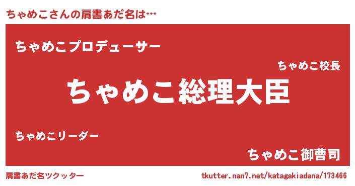 | 意味不明あだ名 | 『ちゃめこフォーエバー』 |