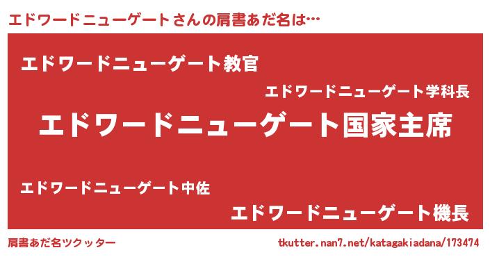 | 男性向けラノベタイトル風あだ名 | 『やはりエドワードニューゲートの青春ラブコメはまちがっている 』 |