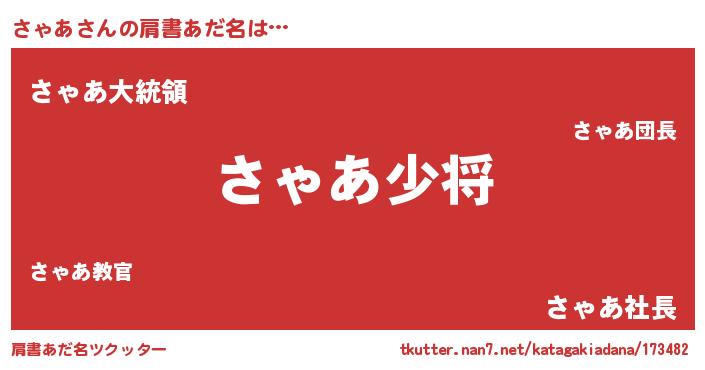 | ヒーロー風カッコイイあだ名 | 『ウルトラさゃあマン』『スーパーサャア』 |