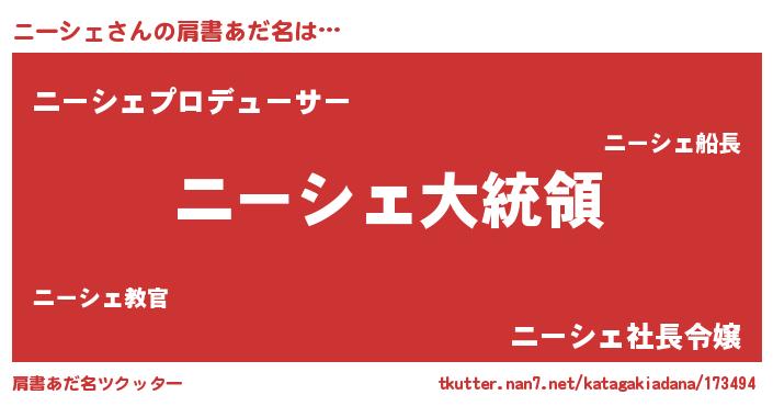 | 意味不明あだ名 | 『ニーシェフォーエバー』 |