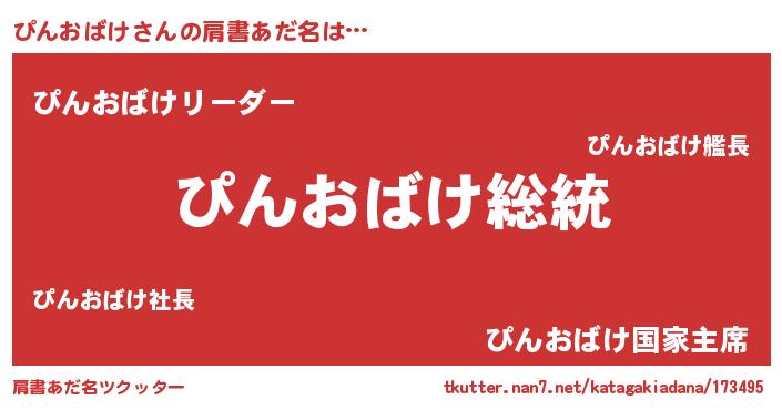 | 男性向けラノベタイトル風あだ名 | 『Re:ぴんおばけから始める異世界生活』 |