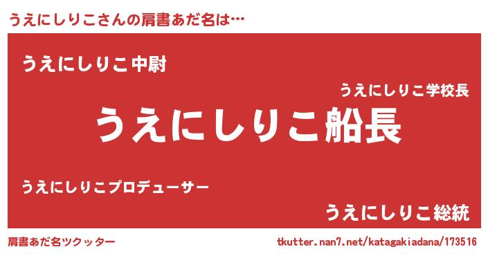 | 欧米人風あだ名 | 『うえにしりこ・ステッグマイヤー』 |