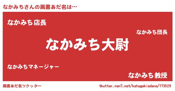 | 男性向けラノベタイトル風あだ名 | 『なかみち~年齢イコール彼女いない歴の魔法使い~』 |