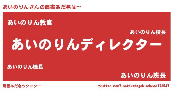 | 男性向けラノベタイトル風あだ名 | 『あいのりんに滅ぼされるだけの簡単なお仕事です』 |