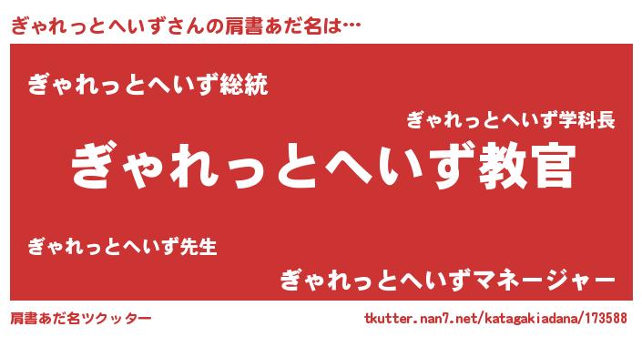 | 意味不明あだ名 | 『住所不定無職ぎゃれっとへいず(95歳)』 |