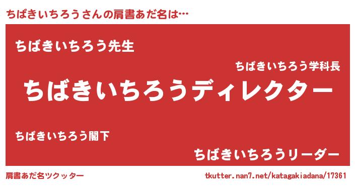 | 意味不明あだ名 | 『永久保存ちばきいちろう』 |