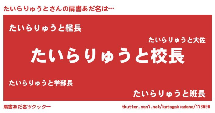 | 男性向けラノベタイトル風あだ名 | 『たいらりゅうとという概念が存在しない退屈な世界 』 |