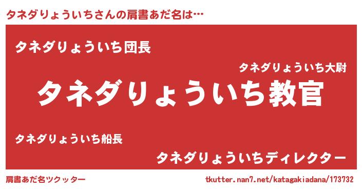 | 料理風あだ名 | 『タネダりょういちのカルパッチョ風』 |