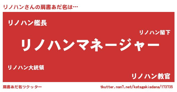 | ヘコむあだ名 | 『なまこ酢』『リノっふぃ~』 |