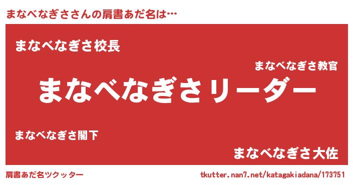 | 意味不明あだ名 | 『とにかく怪しいまなべなぎさ』 |