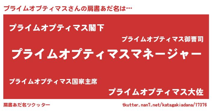 | 女子向けラノベタイトル風あだ名 | 『横柄プライムオプティマスと宰相陛下』 |