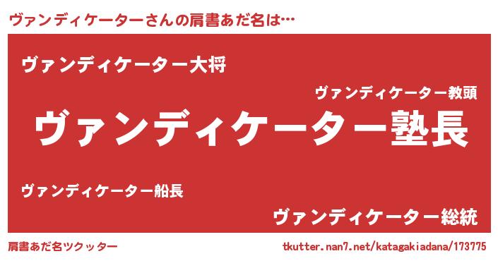 | 男性向けラノベタイトル風あだ名 | 『ダンジョンにヴァンディケーターを求めるのは間違っているだろうか』 |