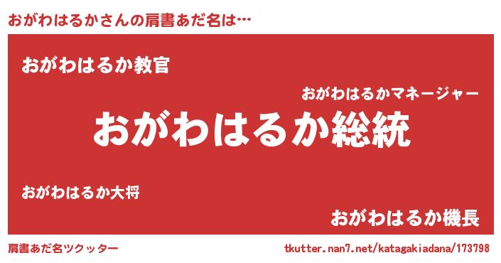 | 男性向けラノベタイトル風あだ名 | 『Re:おがわはるかから始める異世界生活』 |