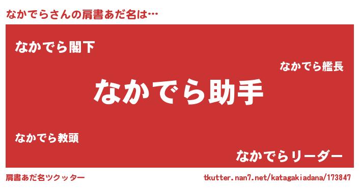 | 男性向けラノベタイトル風あだ名 | 『おまえをオタクにしてやるから、俺をなかでらにしてくれ! 』 |