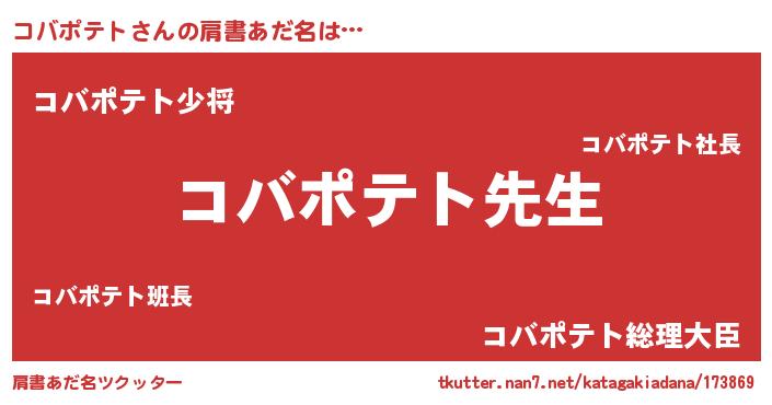 | 男性向けラノベタイトル風あだ名 | 『コバポテトという概念が存在しない退屈な世界 』 |