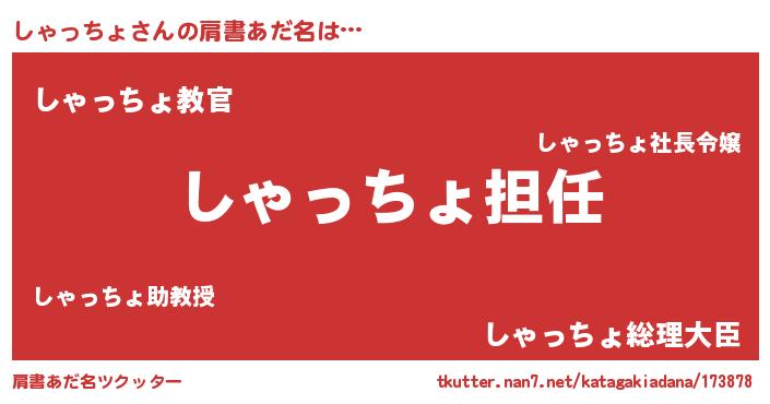 | ヘコむあだ名 | 『しゃっちょ(震え声)』『なまこ酢』 |