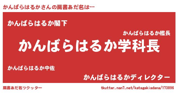 | 男性向けラノベタイトル風あだ名 | 『おまえをオタクにしてやるから、俺をかんばらはるかにしてくれ! 』 |